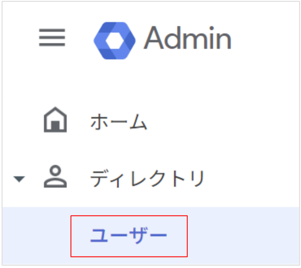 Google Workspaceにログインし、「ディレクトリ > ユーザー」へと進みます。