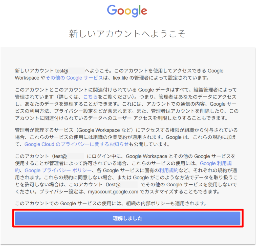 以下のような画面が表示されるので「理解しました」をクリックします。