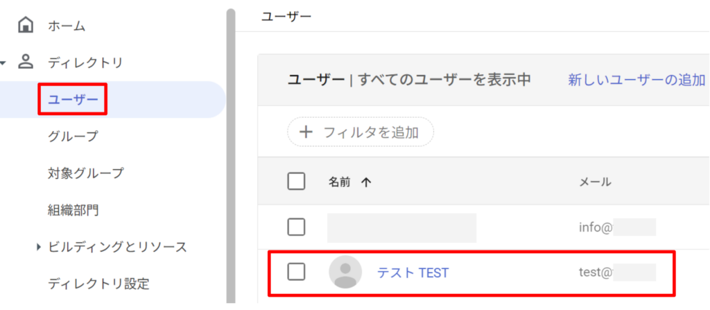 追加したユーザーがWorkspaceの「ディレクトリ > ユーザー」に追加されます。