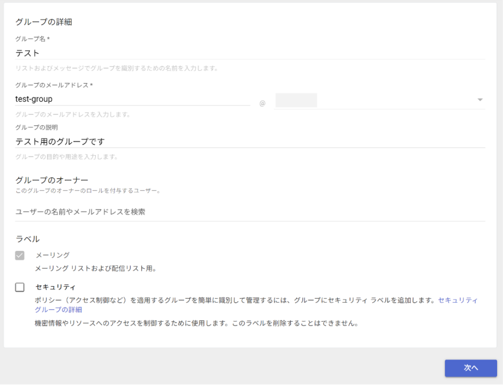 グループは組織外のアカウント(例 ~@gmail.com)も指定することができます。