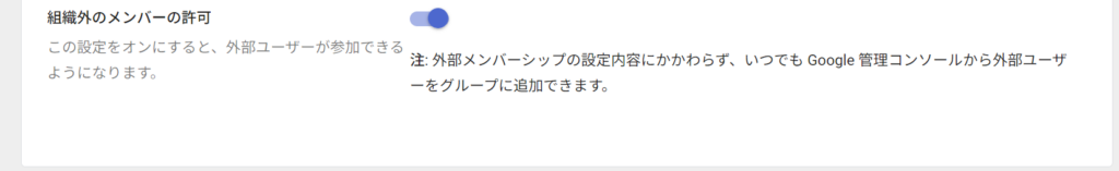 ONにすると、他のドメイン(~@gmail.comなど)のアドレスをグループに追加することができるようになります。