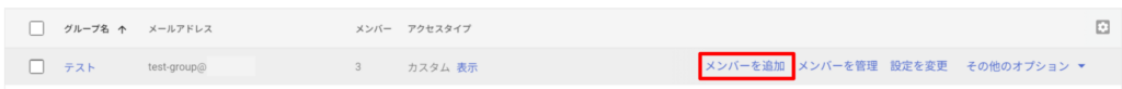 グループにメンバーを追加する場合は、対象のグループを選択し「メンバーを追加」をクリックします。