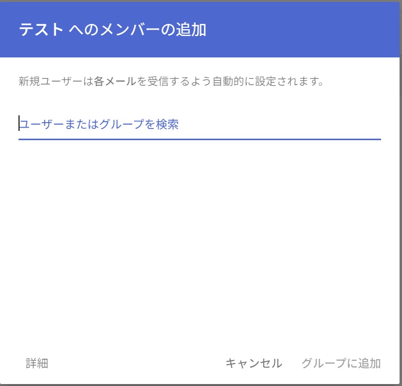 メールアドレス、または、組織内のメンバーであればユーザー名を入力し、「グループに追加」をクリックします・