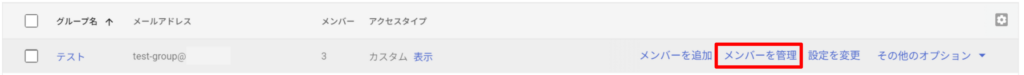 グループに入っているメンバーを確認するためには、「メンバーを管理」をクリックします。