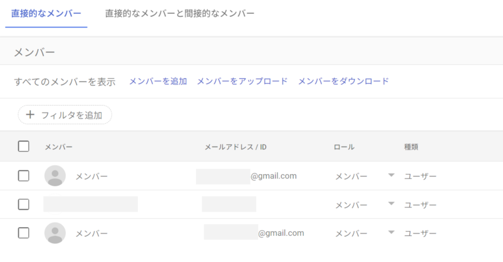 メンバーを追加してすぐには情報は反映されません。メンバーが反映されるまで1~2分ほどかかります。