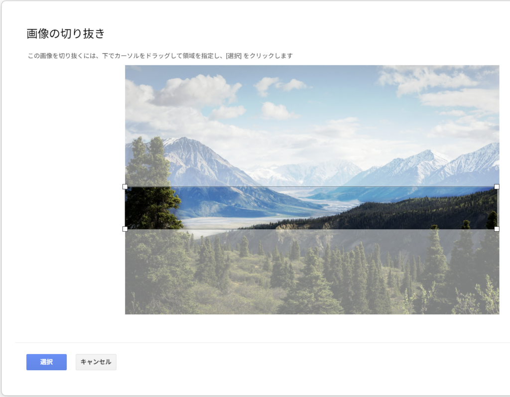 指定ピクセルより大きな画像を選択した場合は、指定サイズに切り取る必要があります。